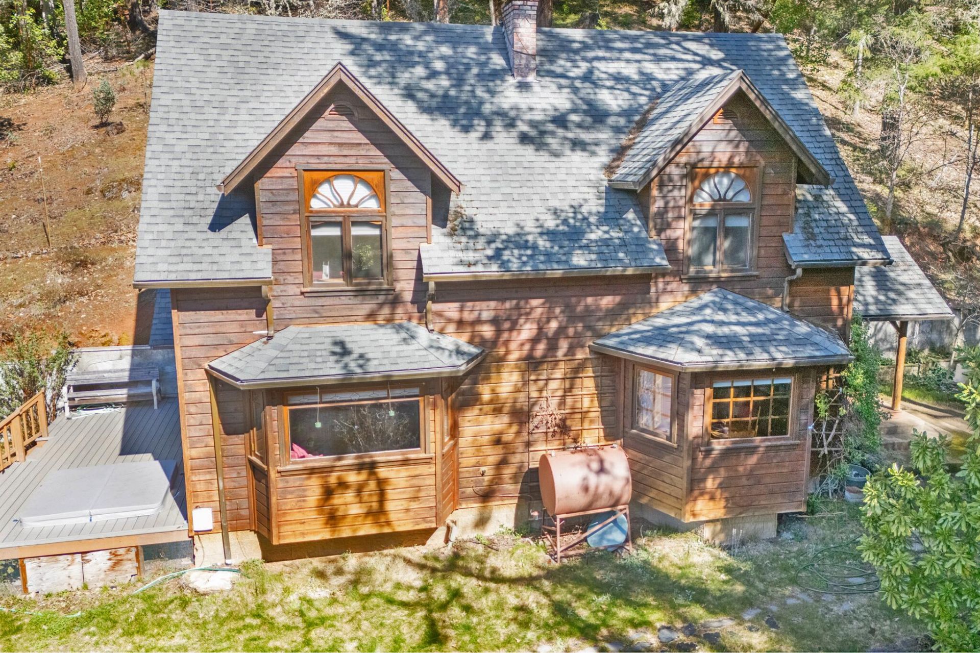 Private, gated sanctuary at the end of a quiet dirt road in the Illinois Valley. This 2,366 sq ft hillside home is surrounded by towering trees and features rich wood tones, exposed beam ceilings, and a striking stone hearth with woodstove. A window seat invites slow mornings and forest views. Curated, artistic touches and handcrafted details give the home a storybook feel.Outside, unwind in the private courtyard with inground pool with waterfall, natural rock accents, outdoor kitchen, solar pool heat, outdoor shower, and hot tub. Multiple outbuildings include approx. 800 sq ft guest quarters/living space, woodworking shop, garden shed, 2 car/ carport adjoining 500 sq ft artists studio.Two tax lots total 15.04 acres with multiple wells (main approx. 20 GPM), small pond, 6,000 gallons of water storage, and an established orchard. Stand alone solar / inverter system when power fails!If youve been waiting for a place that feels like a secret worth keeping--this is it.